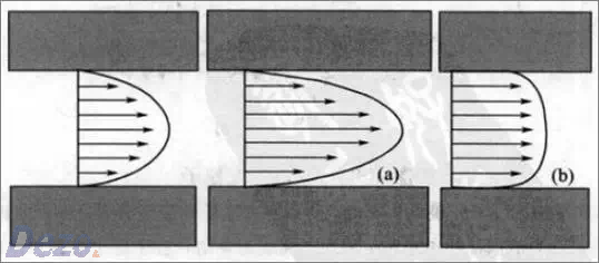 內潤滑的作用如(a),能夠降低熔體黏度,中心處的的流動速率最大,外緣最小。