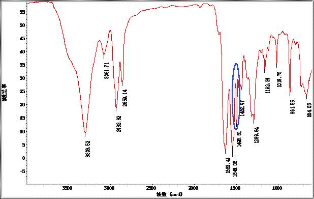 (1)聚酰胺紅外光譜的共同特征(參考圖1-1):3300cm-1(NH-伸縮振動),1635cm-1(酰胺吸收帶Ⅰ),1540cm-1(酰胺吸收帶Ⅱ),1282-1260cm-1(酰胺吸收帶Ⅲ)。在不同聚酰胺中,上述峰位移差別不大,強(qiáng)度較接近,以此可用來快速確定聚酰胺。