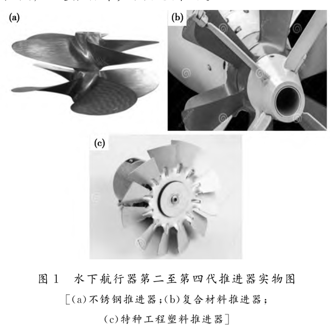 以水下航行器推進(jìn)器為例,其轉(zhuǎn)速高、技術(shù)要求高、質(zhì)量控制嚴(yán)格,隨著國(guó)防工業(yè)技術(shù)和新材料發(fā)展,目前水下航行器推進(jìn)器已發(fā)展到第四代。
