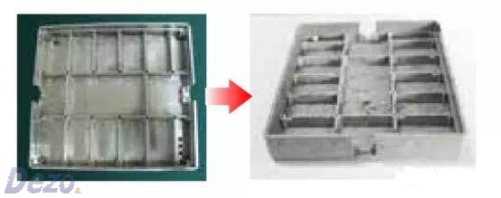 之前的方案為鋁合金壓鑄件,成本高,生產(chǎn)效率低;采用導(dǎo)電材料后性能可以滿足客戶隔離度要求,成本大幅降低,重量降低一半。