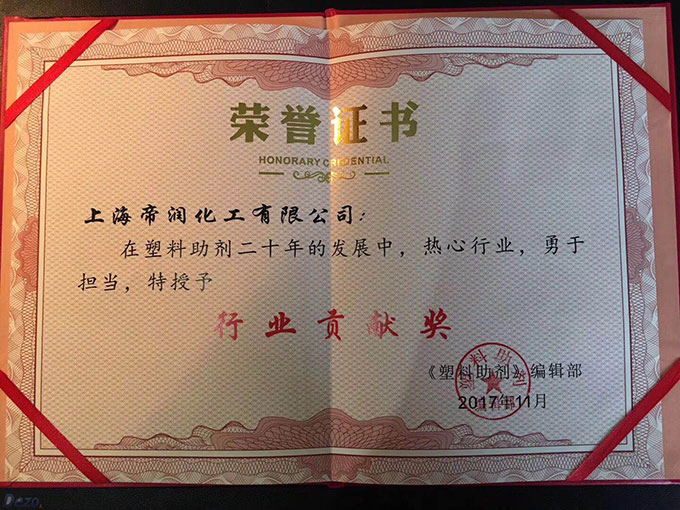 上海帝潤化工有限公司榮獲《行業(yè)貢獻(xiàn)獎》獎項