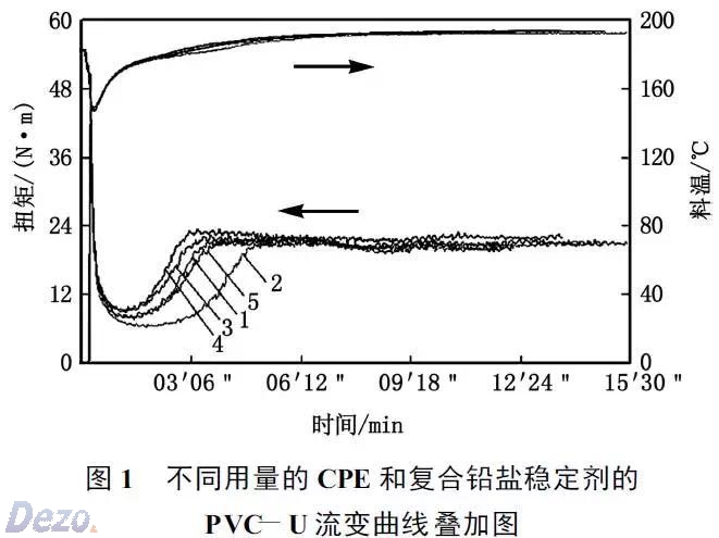 隨著CPE份數(shù)的增加,塑化時間縮短,說明CPE能夠促進塑化。隨著穩(wěn)定劑的增加,塑化時間延長,因其含有外潤滑,增加穩(wěn)定劑的量,外潤滑劑的量自然也就增加。
