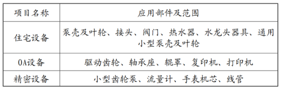 在激光復(fù)印機(jī)、打印機(jī)等用途方面,多使用既具有PPS耐熱固定性能,又有利于其他特殊類型,如齒輪或軸承周圍滑動、導(dǎo)電等。其中PPS在住宅設(shè)施/OA/精密設(shè)備上的應(yīng)用,如表2所示。