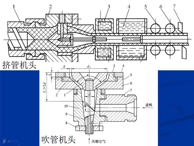 可分為擠管機頭、吹管機頭、擠板機頭等;